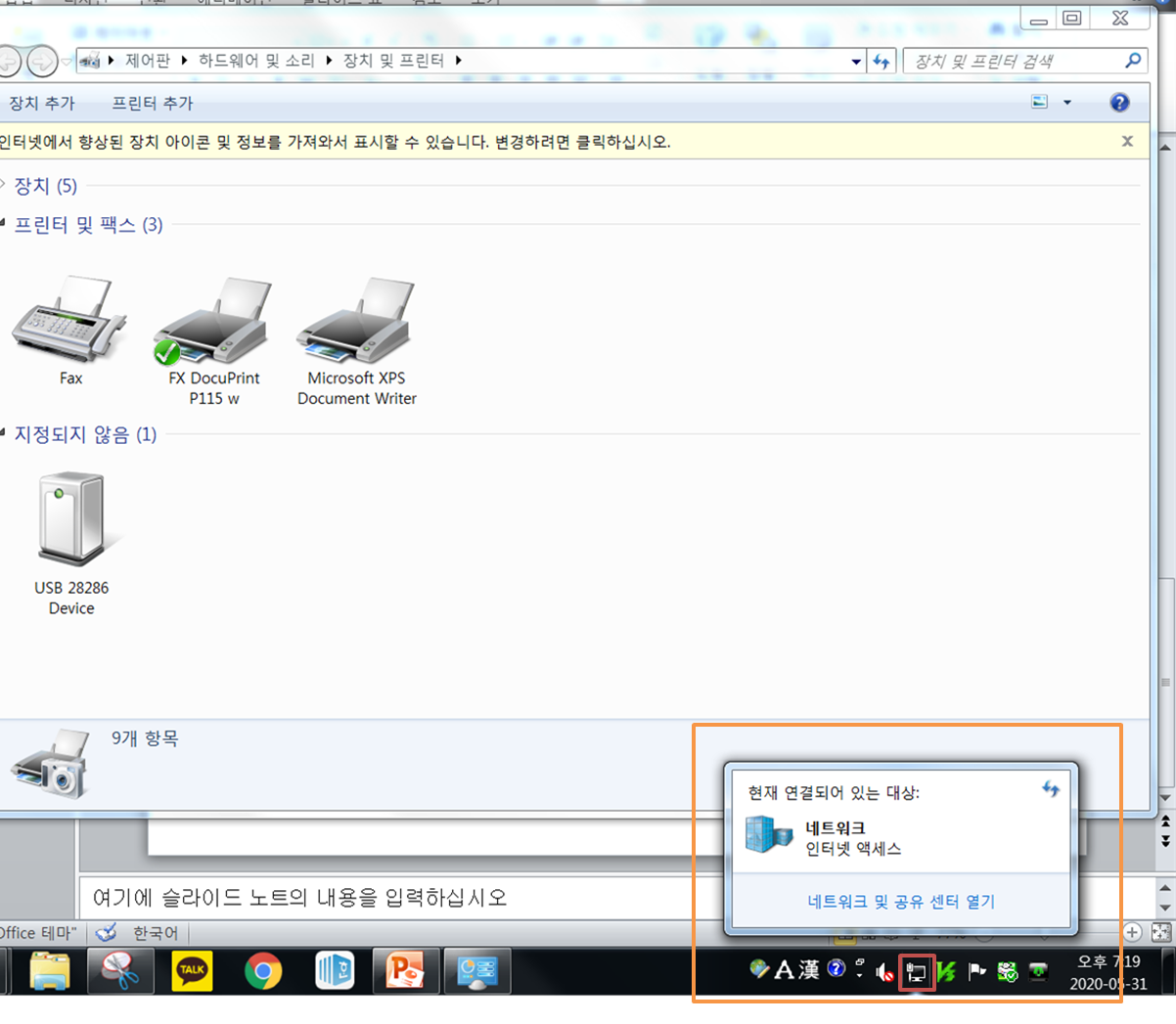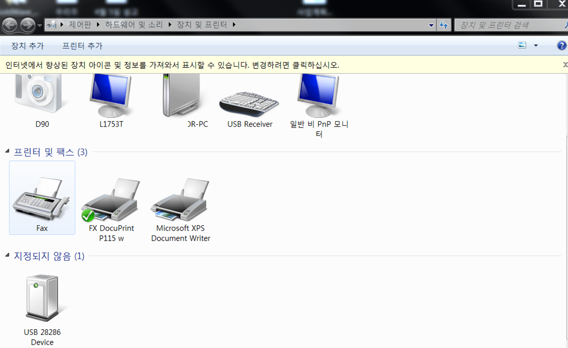 장치 및 프린터 폴더에서 해당 프린터를 선택합니다.