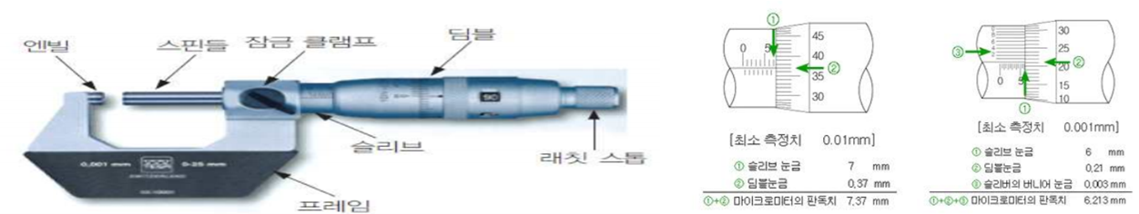 지름에 의해 변화를 읽을 수 있도록 한 측정기로써 0.01mm~0.001mm까지 읽을 수 있다.