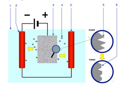 화학 부식과 더불어 일반적인 부식 방법이며 화학 부식과 유사하나 전류와 전압을 조절하여