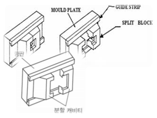 -분할편이 조립된 틈새로 가스가 빠져나가기 때문에 성형 트러블이 많이 감소된다.