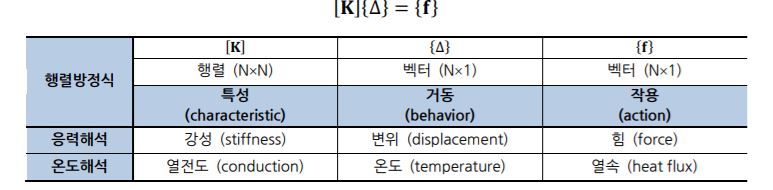 - 요소 강성 행렬과 방정식의 유도: 강성 행렬과 요소 방적식은 구조해석의 배경을 이루는