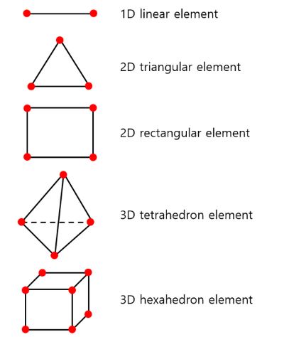 - 격자 분할과 요소 형태의 결정: 주어진 물체에서 사용될 전체 요소 수와 요소의 크기,