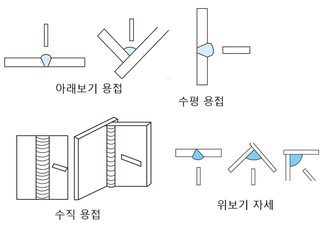 ▶용접자세는 크게 기본자세와 중간 자세로 나누어진다.