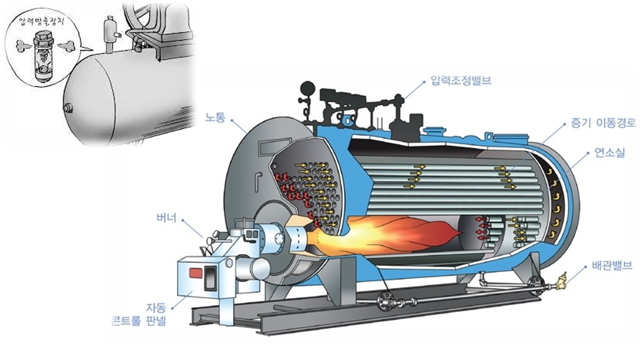 -보일러 내부의 증기압력이 최고 사용압력에 달하면 자동적으로 밸브가 열려서