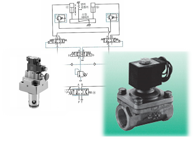 ▶전기적 또는 기계적 입력 신호에 의해 압력 또는 유량을 제어하는