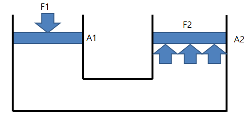 P1=F1/A1, P2=F2/A2 가된다. 이 같이 P1과 P2는 파스칼의 원리