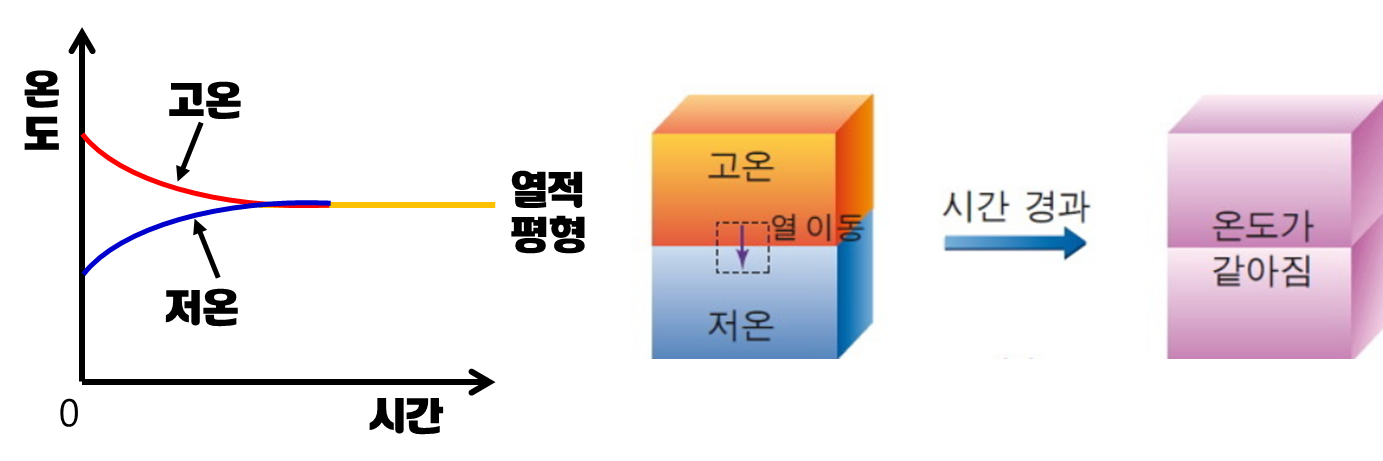 - 열적 평형 : 물질 A 와 B가 접촉할 때 서로 열평형을