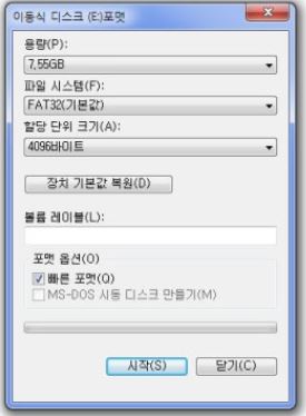 USB를 본체에 꼽고 내 컴퓨터에서 포맷 버튼을 누르세요.
