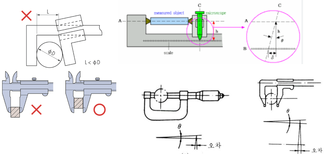 같은 축선상에 있지 않을 경우에는 측정오차가 생긴다.
