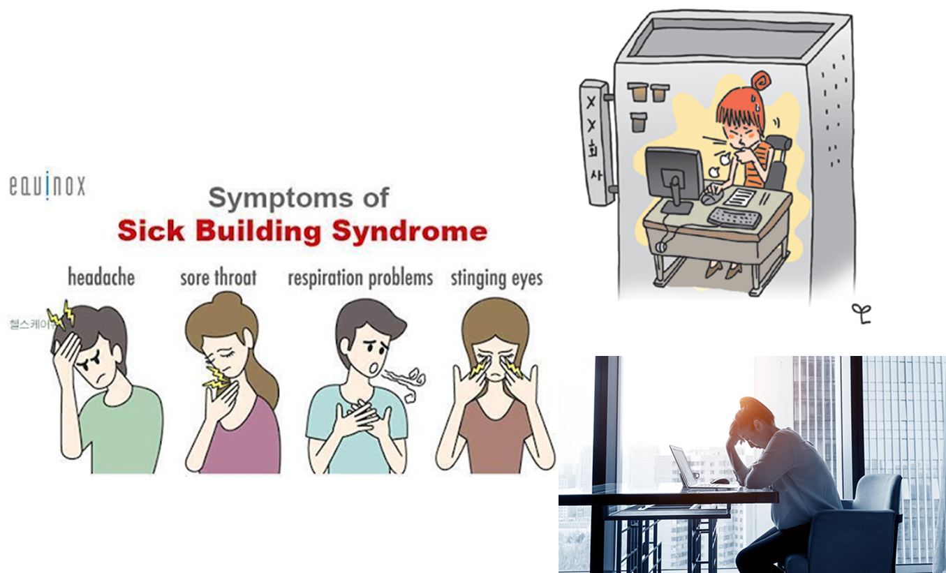 ▶건조하고 혼탁한 실내 공기로 인해 일어나는 신체적 이상 증상 두통,