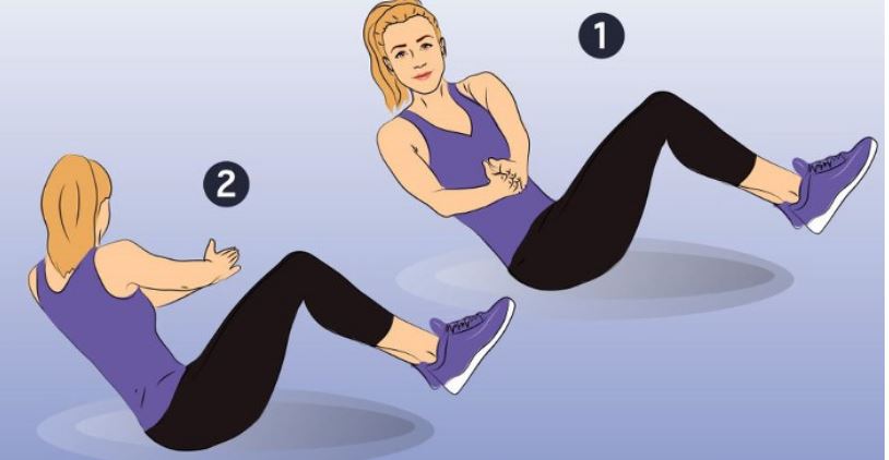 - 방법 : 평평한 바닥에 앉은 후 복근을 긴장 시킨 후 상체를 약간 눕혀 V자 모양을 만들어준다.