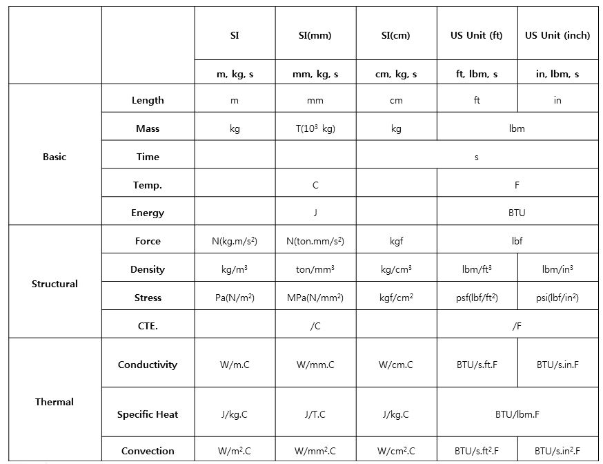 3차원 형상의 대상물 해석 시에는 주로 mm로 되어 있는 SI(mm)단위계를 사용한다.