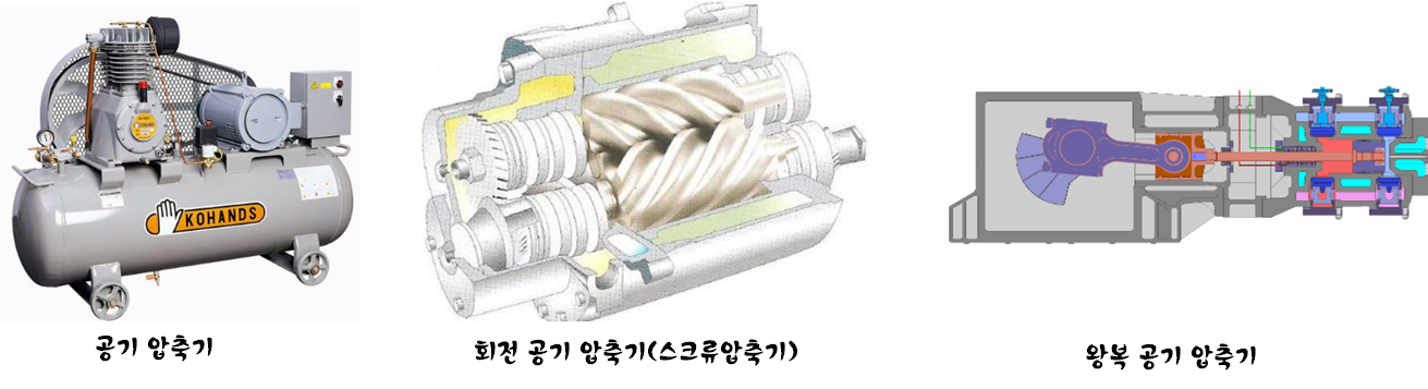 압축하는 장치이다. 주로 베인 형 공기 압축기, 스크루형 공기 압축기, 터보형