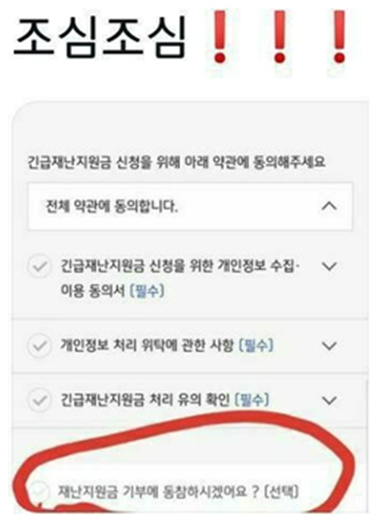 긴급재난지원금 신청 시 주의 사항이 있습니다.