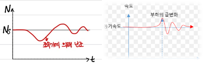 ▶발전기의 부하가 급변하는 경우 회전 속도가 동기 속도를