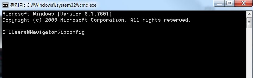 명령 프롬포트창에 들어가서 ipconfig라고 입력후 Enter를 누립니다.