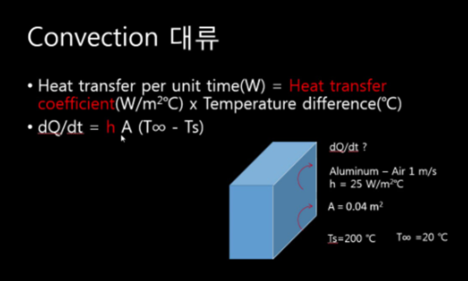 여기서 ( Q )는 열전달량, ( h )는 열전달 계수, ( A )는 표면적, ( T_s )는 표면 온도, ( T_/infty )는 유체의 온도