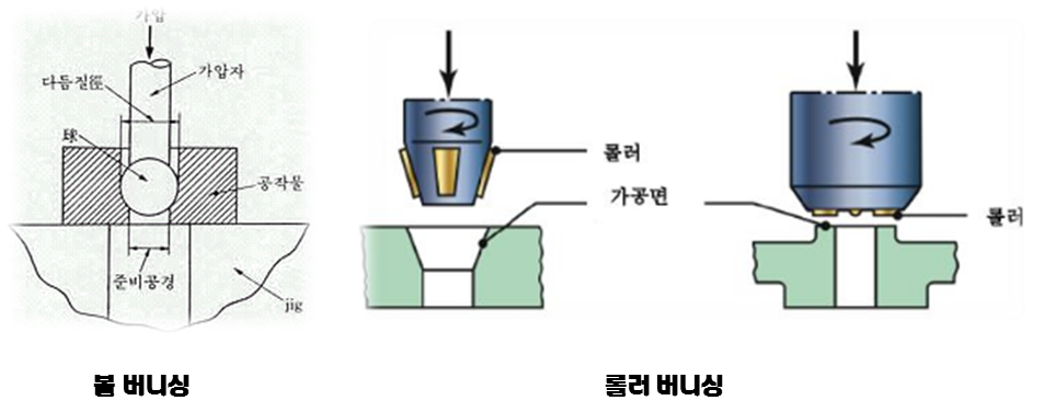 소성적으로 다듬어 표면을 평활하게 하는 것으로 볼, 롤러 버니싱이 있다.