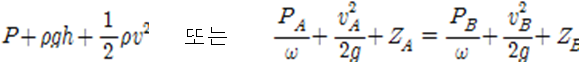 (유체의 위치에너지와 운동에너지의 합이 일정하다는 법칙에서 유도함.)