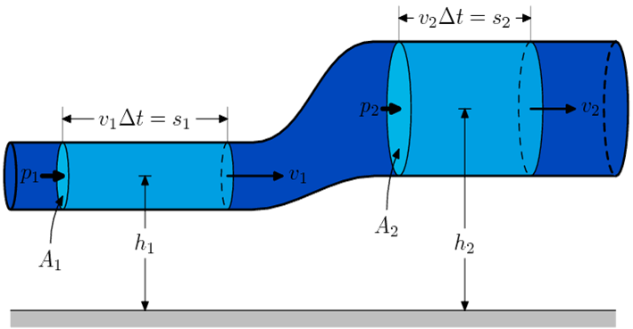 경우 유체의 속력은 좁은 통로를 흐를 때 증가하고 넓은 통로를 흐를 때 감소한다. 베르누이의 정리에