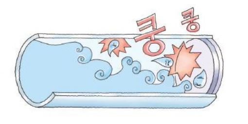 - 플러시 밸브나 수전류를 급격하게 열고 닫을 때 일어나기 쉽다.