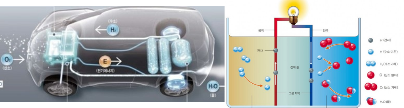 ▶ 자동차와 주유소 모두 무겁고 부피가 큰 연료 저장 용기가 필요하다.