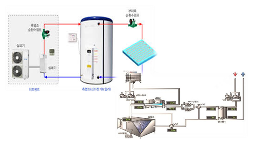 -냉동기나 히트펌프 등의 열원을 야간에도 운전하여 축열조에 저장하였다가 주간에