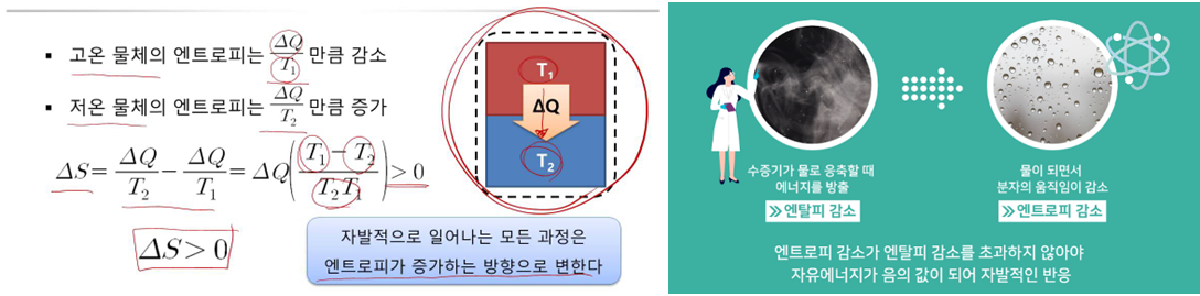 상태로 변할 때 엔트로피가 감소하는 것을 설명 할 수 있다.