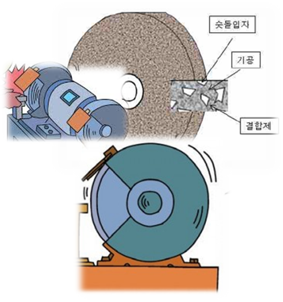 ▶연삭기에 장치하여 연마 작업을 하는 둥근 바퀴 모양의 숫돌을 말한다.