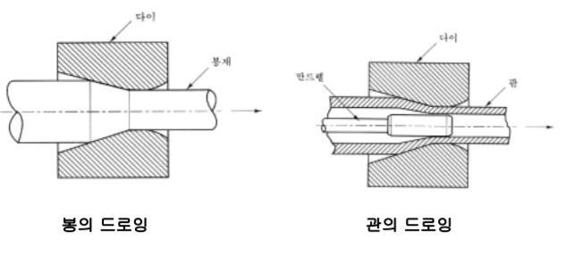 - 테이퍼 형상의 구멍을 가진 다이를 통하여 소재를 인발함으로써