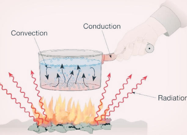 전도는 고체 물질 내에서 열이 이동하는 방식입니다. 예를 들어, 뜨거운 물체와 차가운 물체가 접촉할 때, 고온의 물체에서 저온의 물체로 열이 전달됩니다. 전도는 물질의 열전도율에 따라 다르며, 열전도율이 높은 물질일수록 열이 빠르게 전달됩니다. 전도의 수학적 표현은 다음과 같습니다: