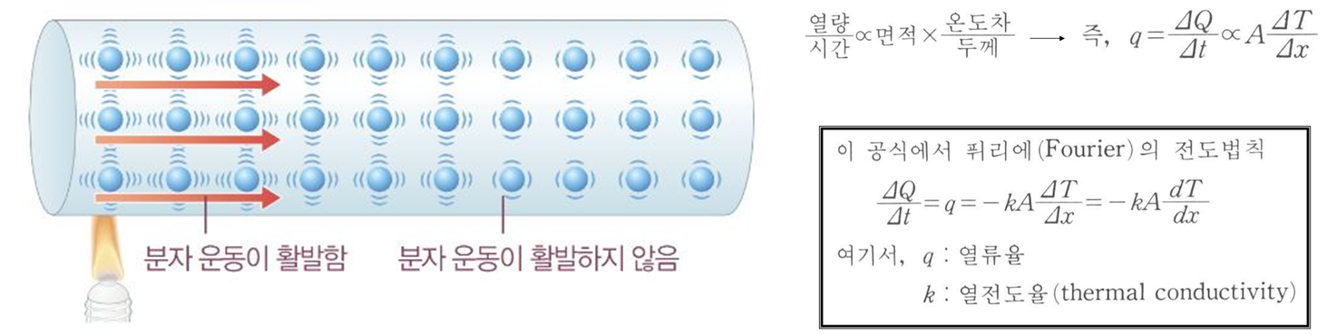 - 물질의 입자의 이동 없이 고온의 입자로부터 저온의 입자로 열이 전달되는 형태를 말한다.