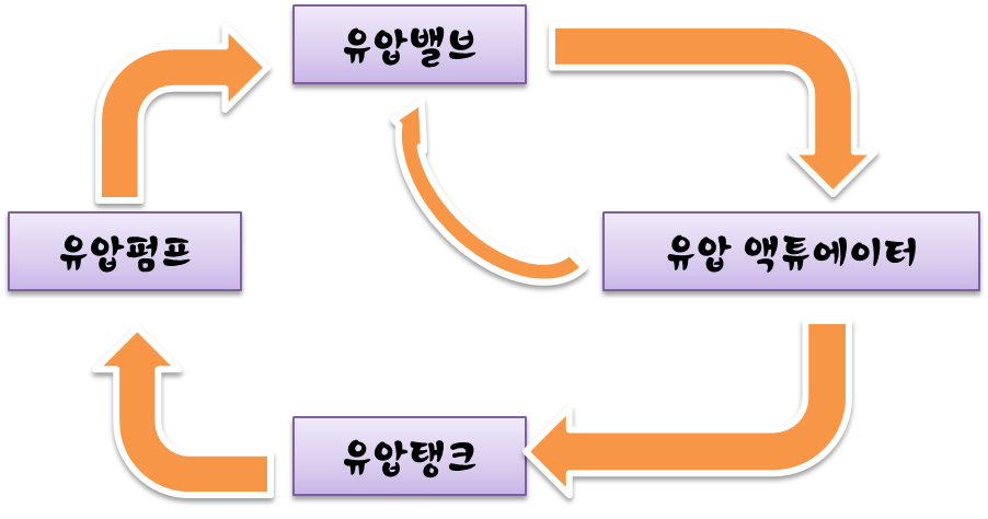 ㄷ. 유압 밸브 : 압력제어밸브, 유량제어밸브, 방향제어 밸브