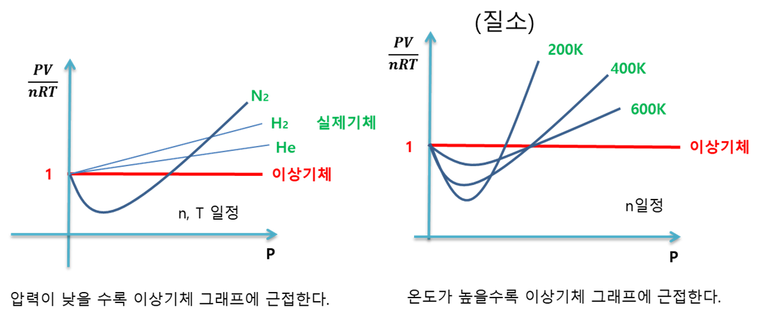 예를 들어, 기체 분자 간의 상호작용이 증가하면 압력이 예상보다 높아지거나 낮아질 수 있다.