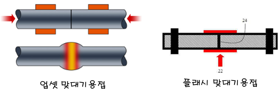 -선이나 봉 등의 모재 접합면을 맞대서 전극사이에 끼우고 전류를 통하여 접합부가