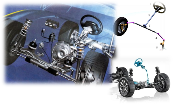 ▶ 조향 장치는 운전석의 조향 핸들을 회전시키거나 각 링크기구를 움직여