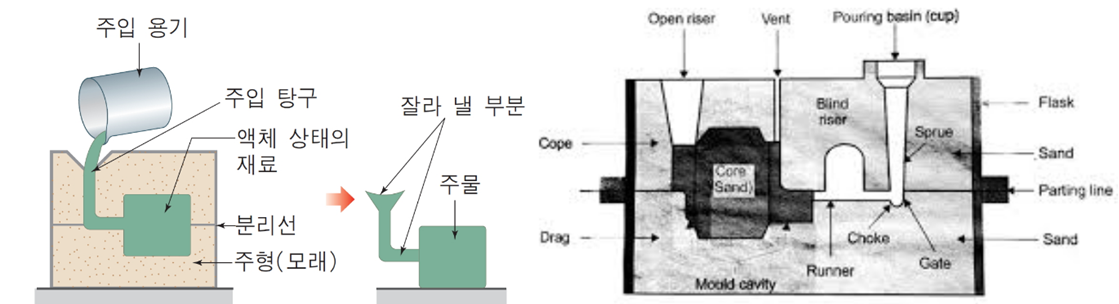 응고 시 원하는 형상을 가지고 있는 주형에 주입하여 단순하거나