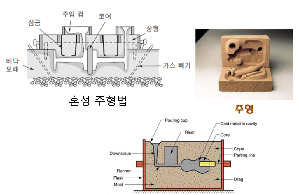 부분을 만들고 주물상자 하나남을 상부에 놓고 주형을 완성한다.