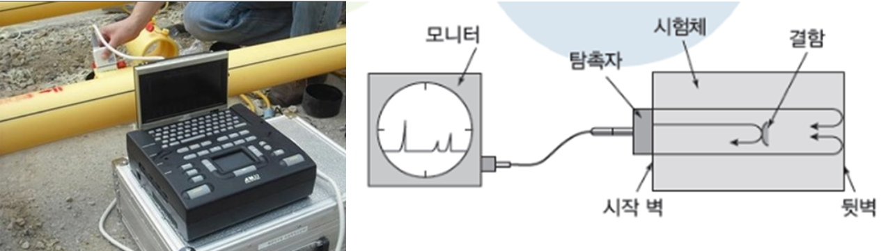 -음파가 시험 시편을 통하여 전달되며 전달되거나 반사된 신호를 측정하여