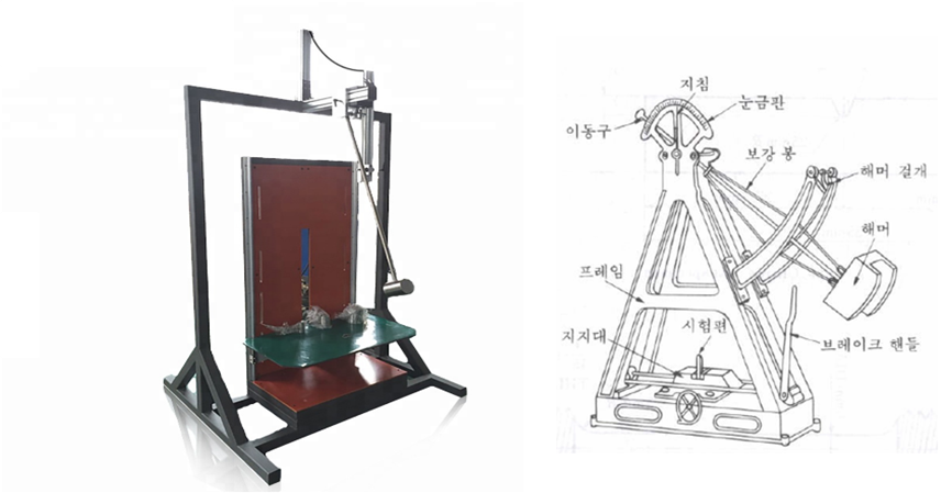 - 충격 실험 시편을 준비하고 시험기의 수평 상태를 확인다.