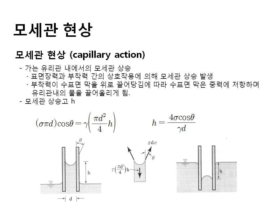 상승하게 됩니다. 이때, 물과 유리 사이의 부착력이 물 분자 간의 응집력보다