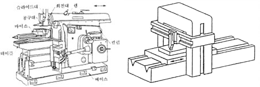 공작물을 고정한 테이블에 왕복운동을 주어 절삭을 한다.