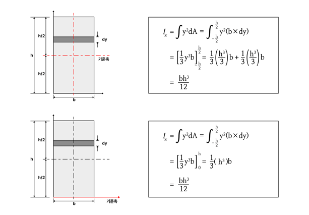 2차 단면 모멘트는 휨에 대한 저항력을 나타냅니다. 따라서, 이 두 모멘트를