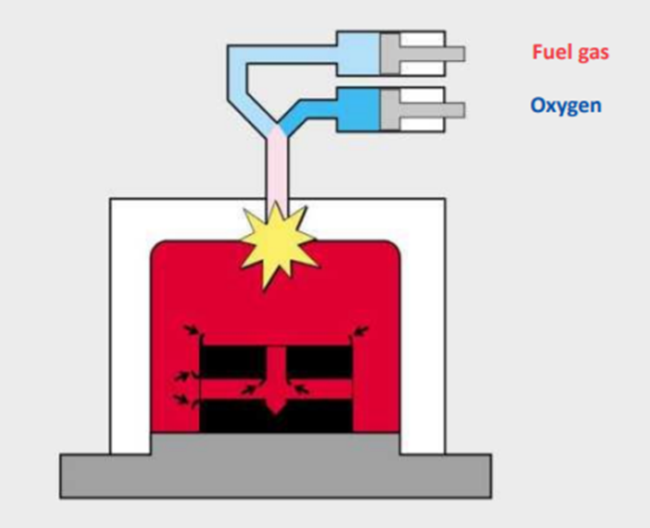-혼합 가스물은 점화 요소인 스파크 플러그에 의해 점화되고 이때 수초 내의 배부와 외부의 버를